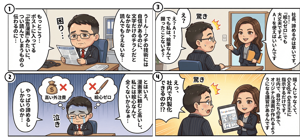 - コスト削減: 漫画家やデザイナーに外注する費用・時間を大幅にカット。